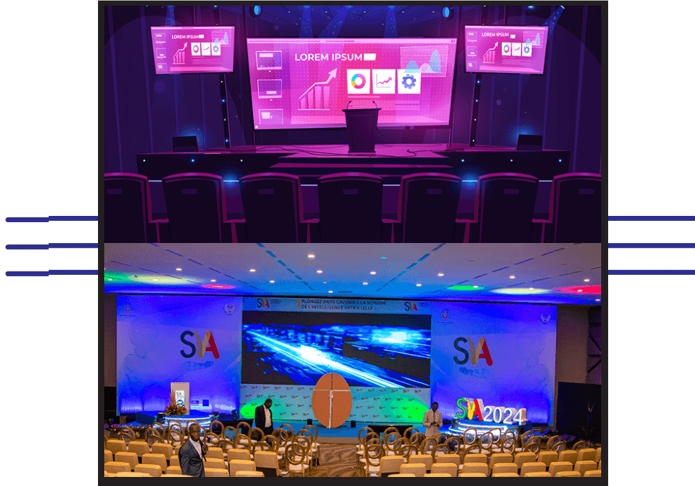 Nous offrons des solutions personnalisées en matière de conception vidéo, son et lumière, pour s'aligner parfaitement sur vos besoins et vos aspirations.