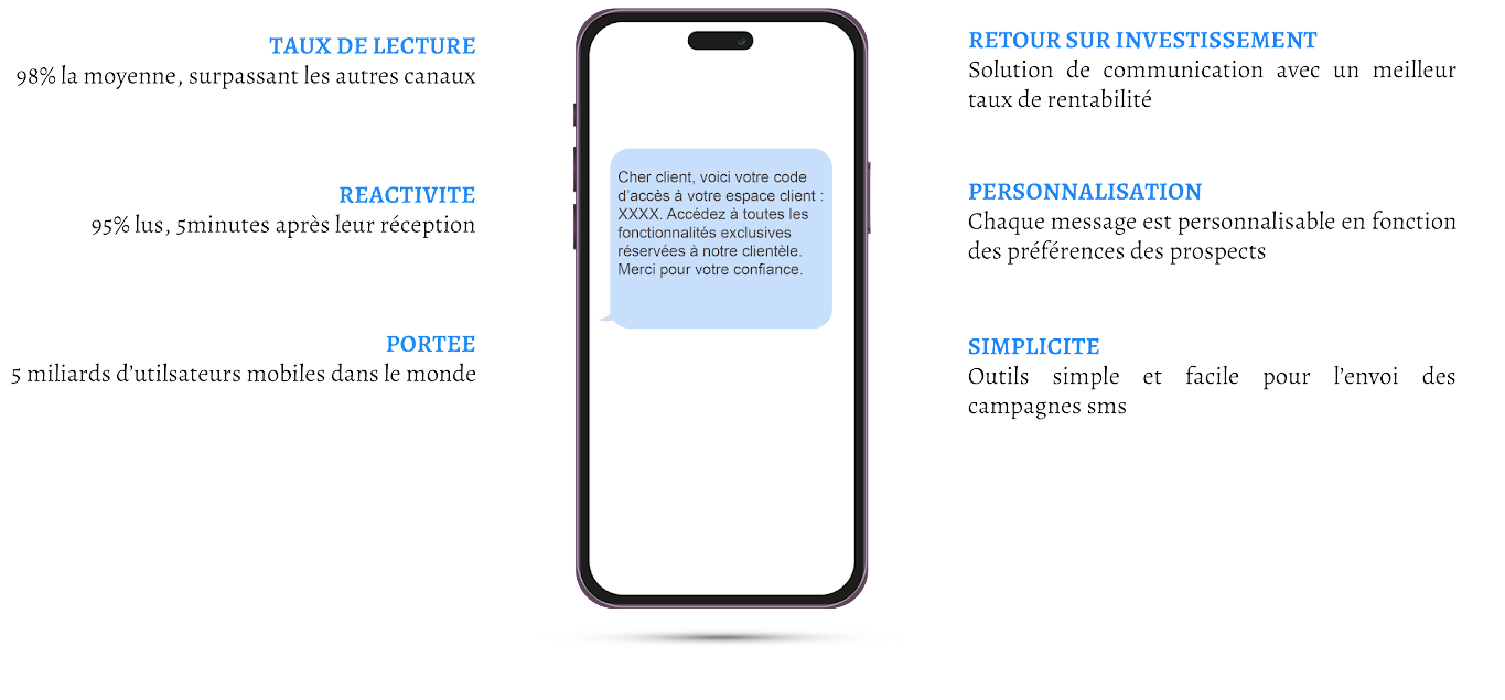 Et si vous utilisez le marketing par SMS pour toucher vos clients instantanément ? Avec un taux d’ouverture ultra-rapide, le SMS professionnel est un outil puissant pour votre communication. C’est le moment idéal pour vous lancer !